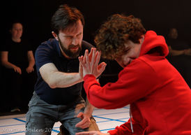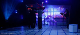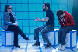The production also features loud noises and some moments of sensory intensity, reflecting the content of the novel and autistic experience.